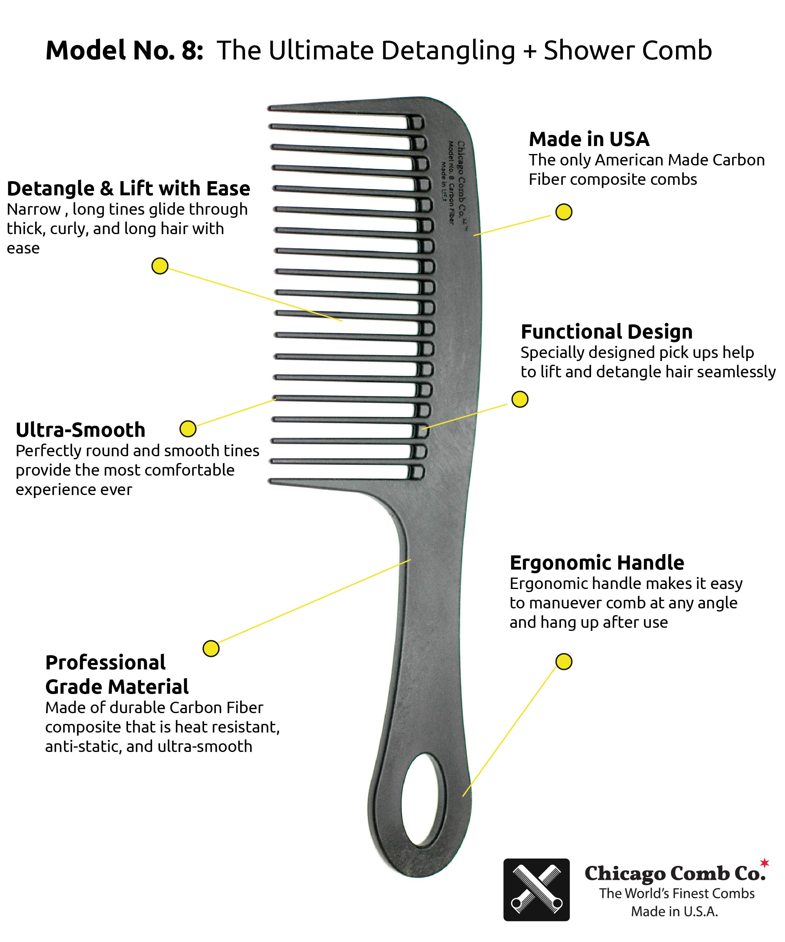 The new Model No. 8 Carbon Fiber is the ultimate comb for long, thick, curly, and natural hair. Ideal for both men & women. Its ultra-smooth, rounded teeth easily glide through the hair to: