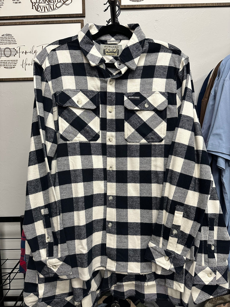 Burlebo Flannel Button Up Shirt Black Buffalo Size M & 2X