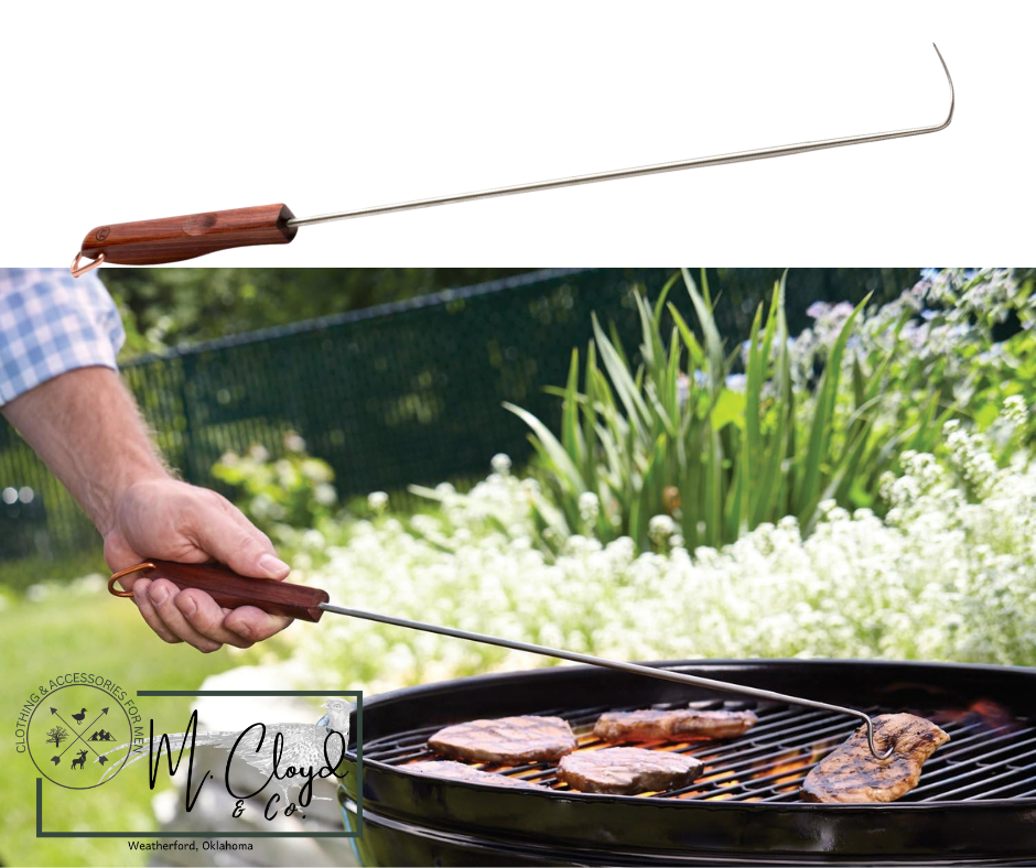 -MEAT HOOK FOR GRILLING: Pigtail meat hook turns, flips, and carries food quickly and safely, perfect for the BBQ grill, oven, broiler, smoker or campfire; the small sharp tip of hook latches effortlessly into steaks, tri-tips, roasts and more