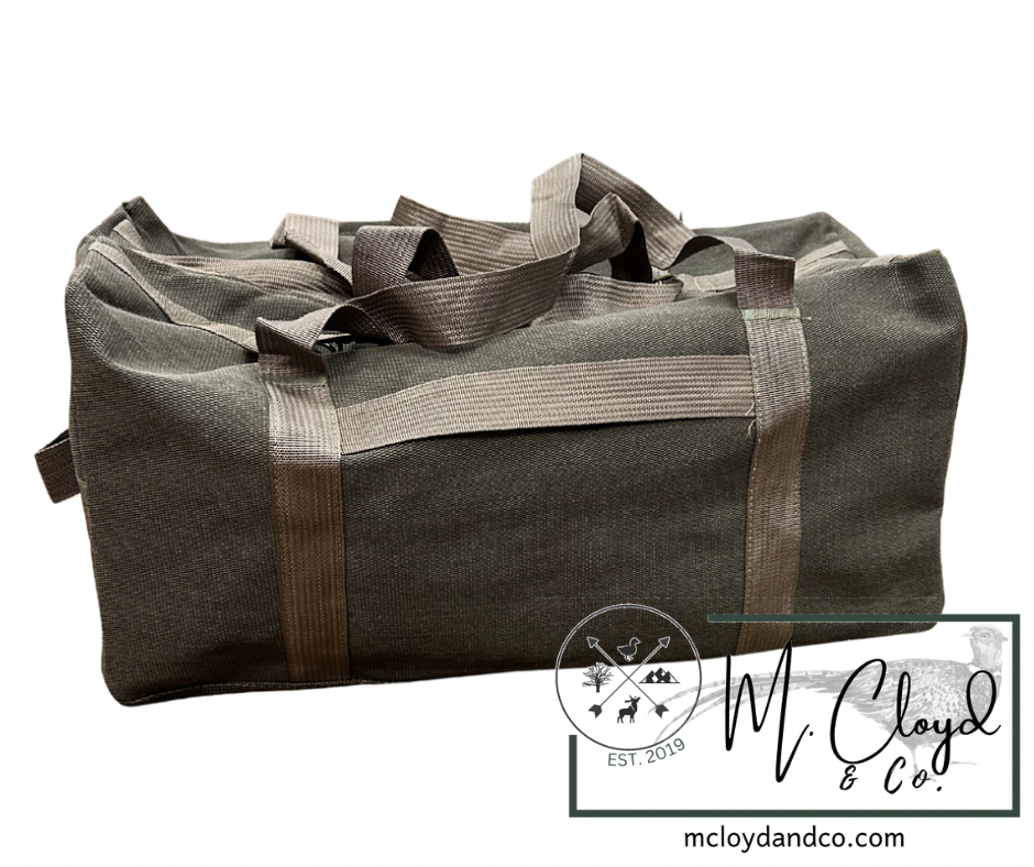 Canvas; Polyester Lining. Multiple pockets for organization. Great gift. Handle and adjustable strap. Dimensions: 21.75" x 10" x 10.75" Material: Cotton