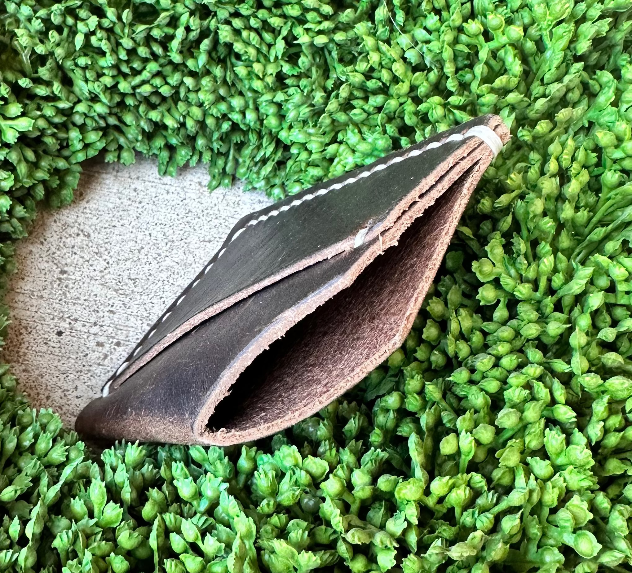 This beautiful every day carry, a slim wallet is as simple as it gets. Easily carries 3 or 4 of your daily cards, and will stretch to hold more with regular use. Stash cash, receipts or spare items in the front pocket.