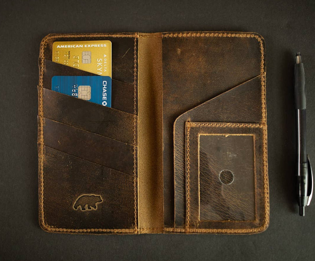 Interior || 4 card slots, ID pocket, wide cash and receipt sleeves on each side, checkbook slot.
