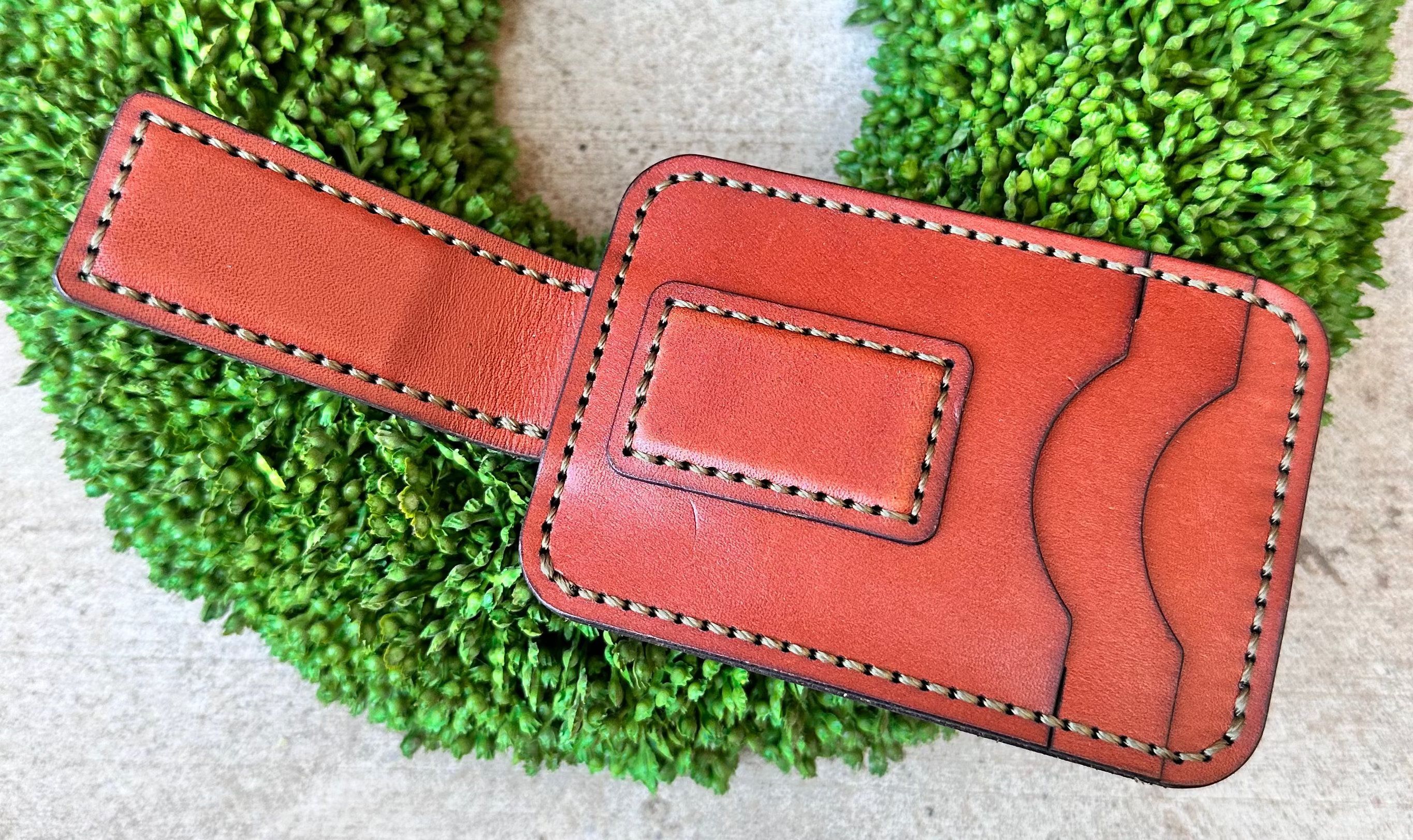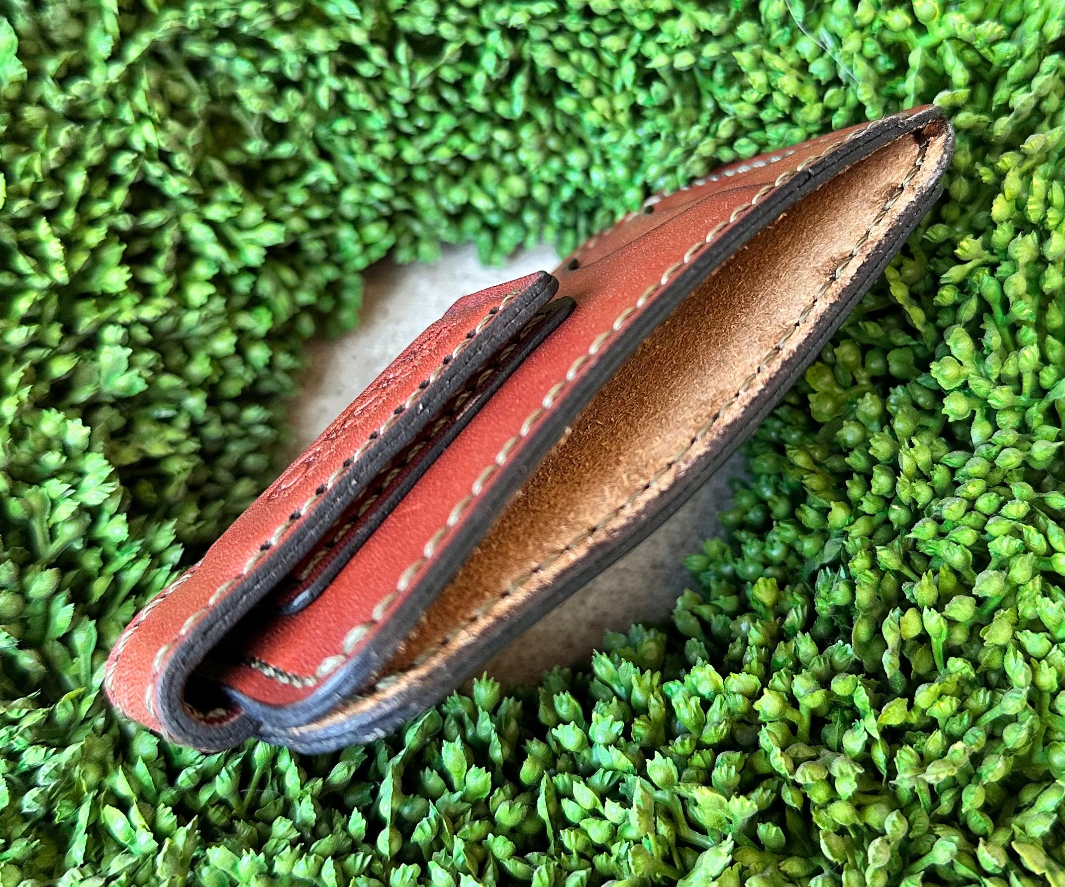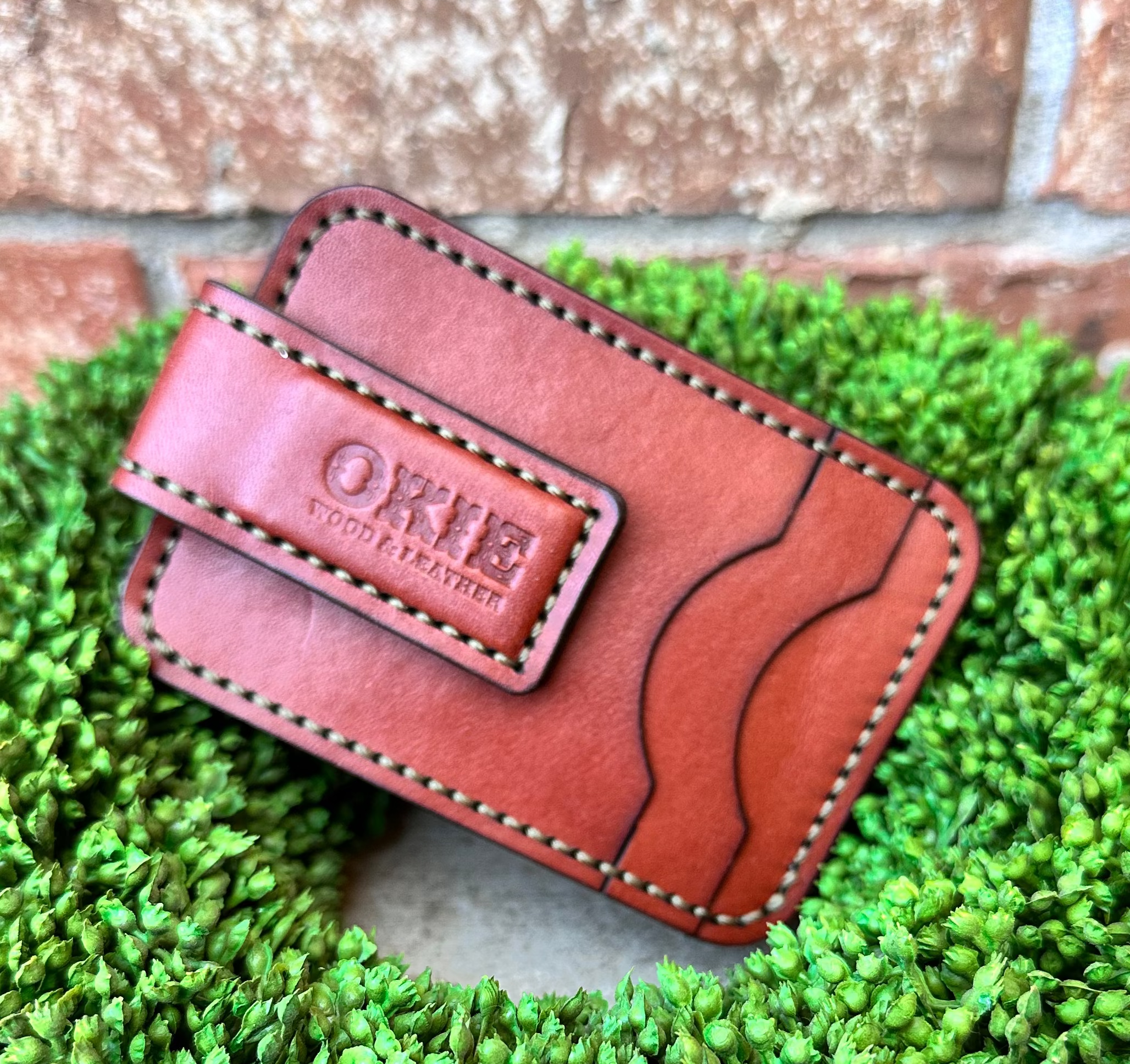Okie Wood & Leather Magnetic Money Clip Wallet with Contrasting Army Green Stitching ๐บ๐ธ