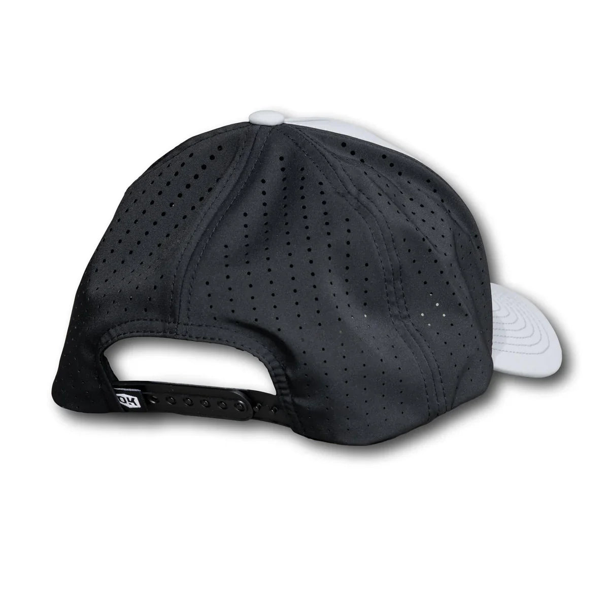 Grey & Black snapback, semi-curve bill. Full coverage with perforated back.