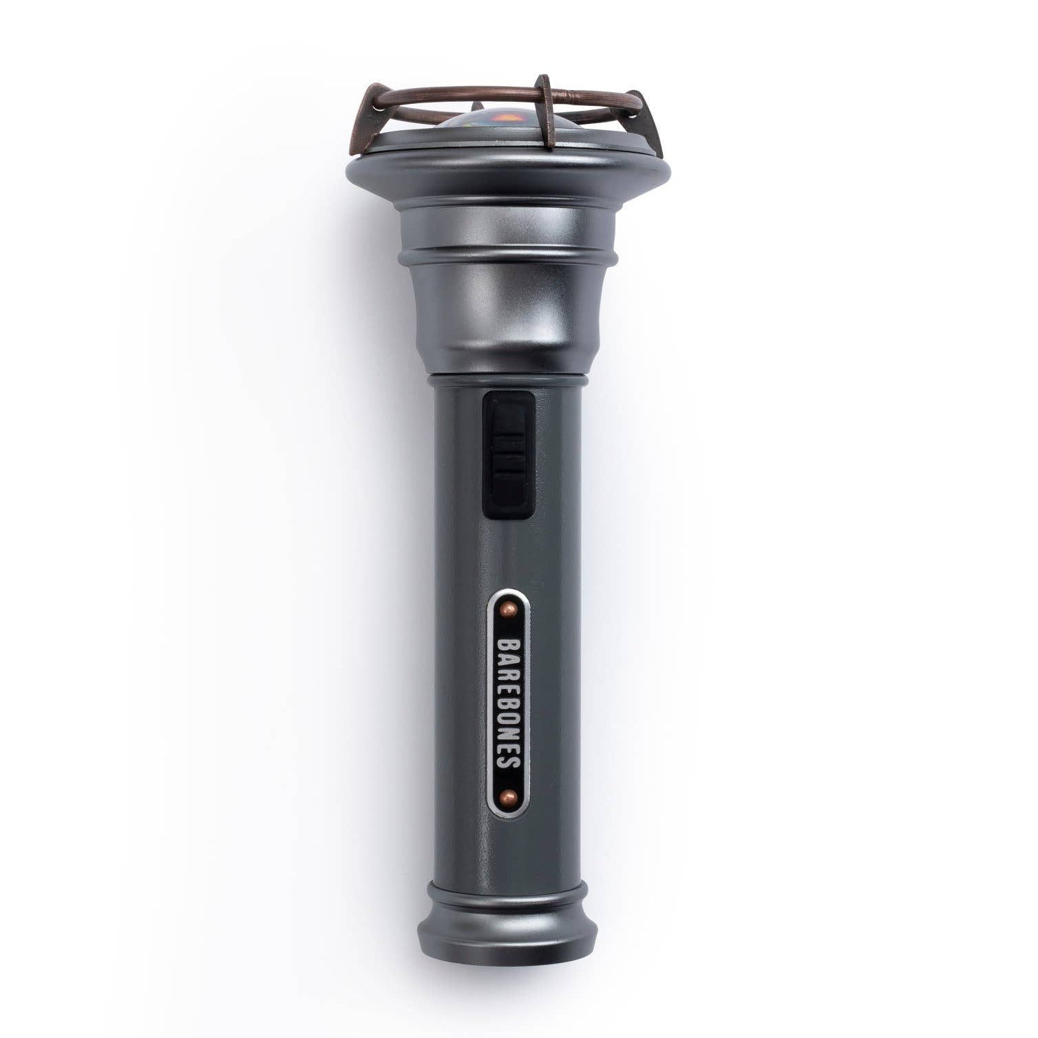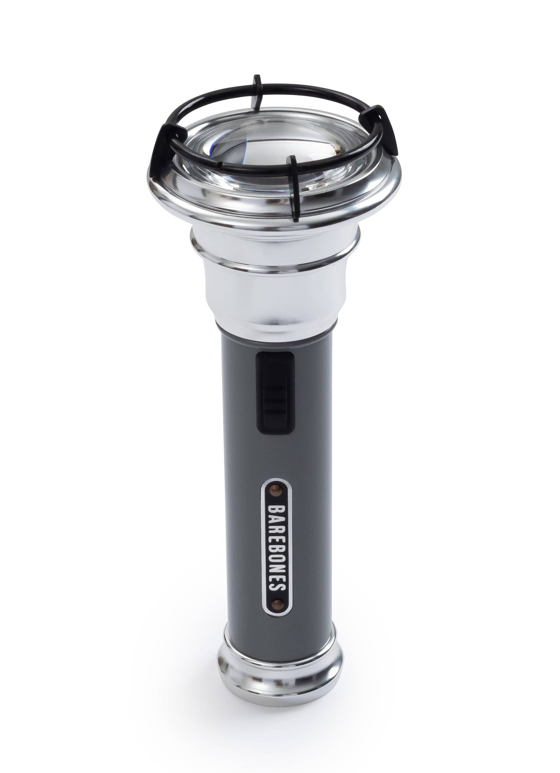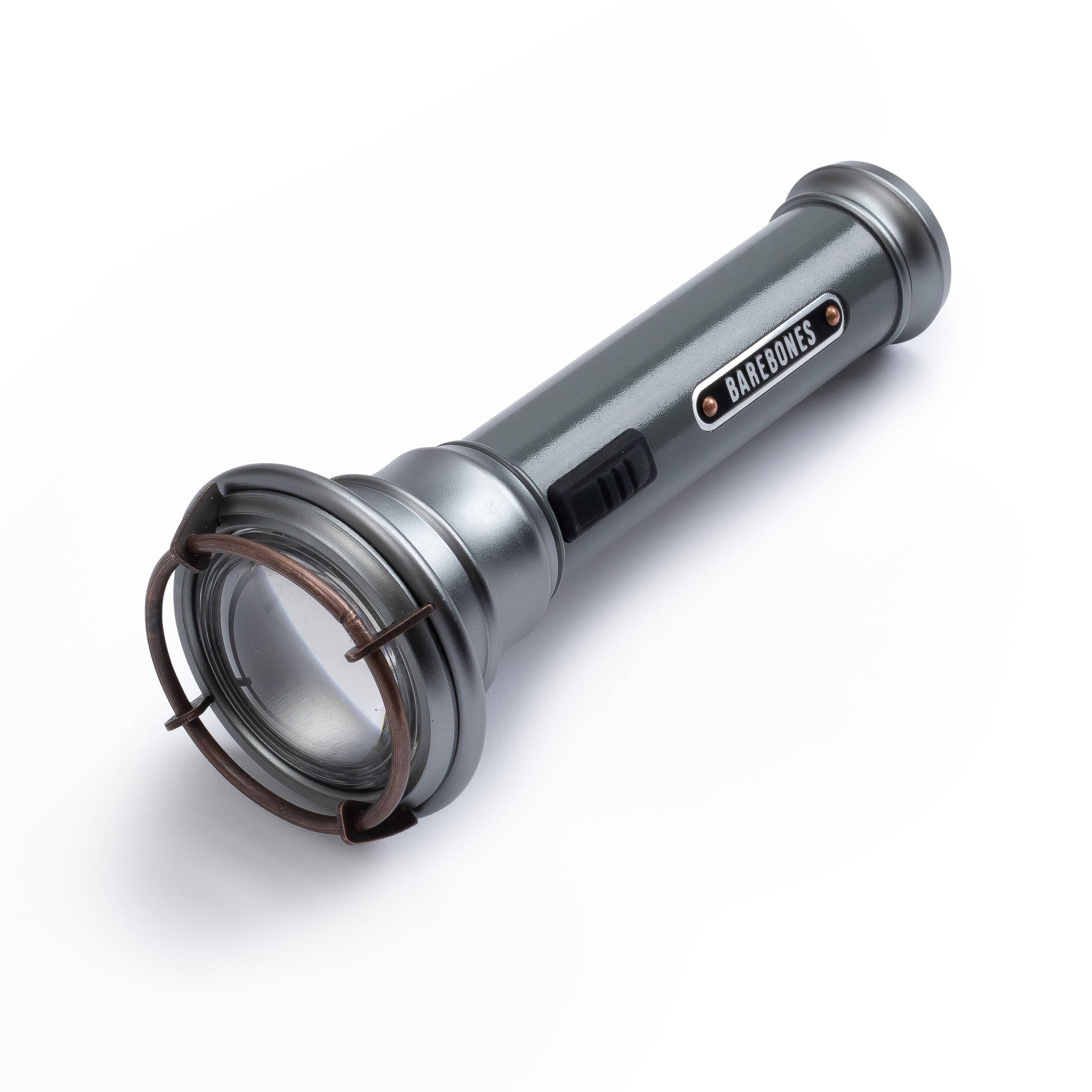 Convenient everyday led flashlight with a nod towards its vintage cousin. Cage styling with grey hammer tone style texture paint gives a classic look with modern appeal. An additional hook on the bottom makes it easy to hang at eye level in the garage or tent. Perfectly sized to fit in your hand. Throw it in your bag or car for emergencies, or pack it while camping or hiking.
