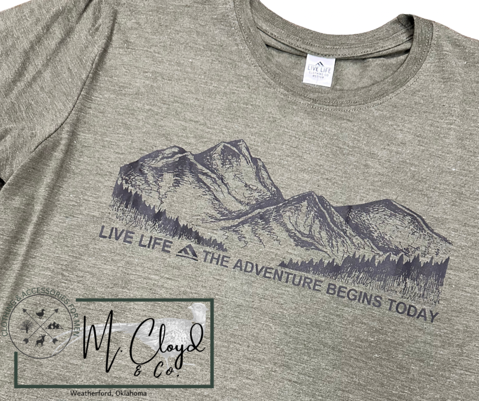 Classic, this Live Life Clothing Co. tee is a great combination of Heather Green Tee with Black graphic.