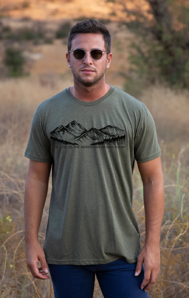 Live Life Clothing Co. Issac The Adventure Begins Today Green Tee Size M-XL