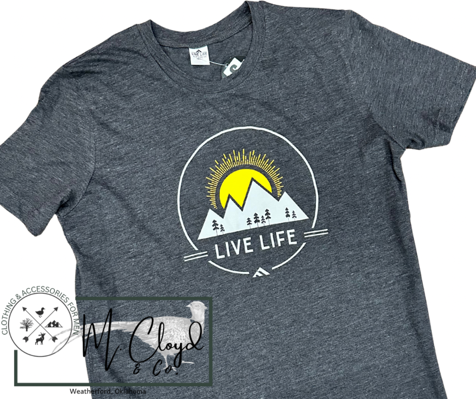 Classic, this Live Life Clothing Co. tee is a great combination of Heather Charcoal Tee with yellow and grey graphic.