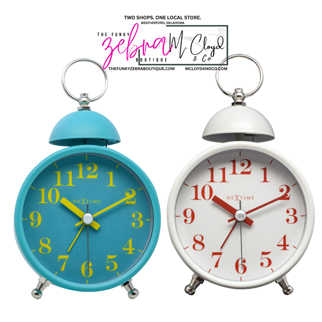 Retro Metal Single Bell Alarm Clock - Turquoise or White