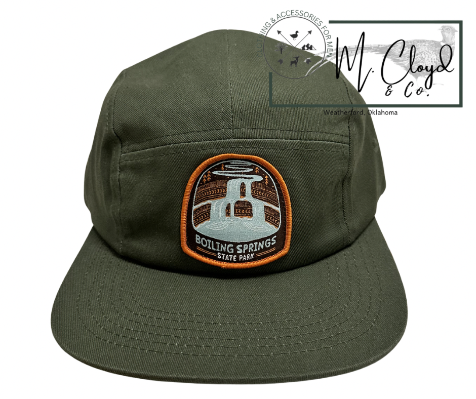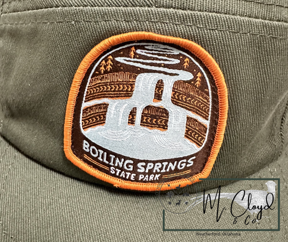 Made with durable, breathable materials and an adjustable fit, it’s designed to be your go-to hat whether you’re exploring the outdoors or just showing love for one of Oklahoma’s favorite state parks. Timeless, comfortable, and easy to wear — this hat brings a little piece of Boiling Springs wherever you go.