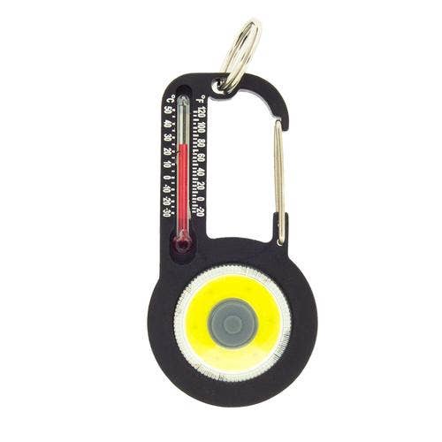 A weather report and an ultrabright light at your fingertips! Clip TempaBright to your backpack, parka, jacket, keychain, tent—anywhere you need some extra light! The perfect accessory for camping, hiking, backpacking, or any outdoor activity. This handy carabiner includes an LED light and thermometer. Clip the carabiner to your jacket or pack, or use as a zipper pull or keychain accessory with included split ring.